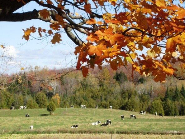 Very pretty autumn foilage. I especially like the dairy cows autumn scene. Goodness, that is an interesting mushroom with a fall leaf for lunch.