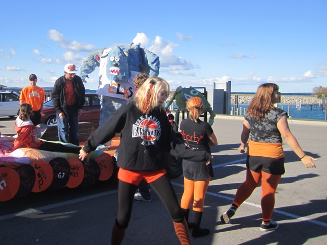 Yesterday was a big day in Elk Rapids. Bouquets of black and orange balloons, tethered in front of every shop, bounced around in the breeze. Kids with orange hair and astonishing getups built floats over at the marina, and practiced their moves.