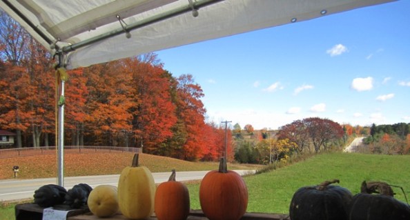 Pumpkins and squash and bok choy and rainbow chard are on offer at the Providence Farm stand. The view isn’t too shabby either.
