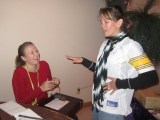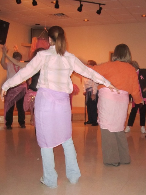 I went to the Antrim County High Tea for Breast Cancer Prevention fundraiser on Sunday because Louan asked me to. After all, she said, if it hadn’t been for the services and support offered by that group she’d be, well, dead. That seemed like a pretty good reason, so I trundled down to Elk Rapids. I did not get a whole lot of good photos, although the potential was fabulous. This was a women-only event, not because men do not develop breast cancers–they do–and not because women do not rely upon the stalwart support of the wonderful men in their lives when Bad Stuff Happens–we do–but because this is a rowdy, get-down, let-what-hair-you’ve-got-left-down party. Sort of like deer camp for grrrrls. We ate what we wanted to, and all of it was delicious. We told each other stories that will never find their way into these pages. We won raffle prizes. We belly-danced. We had reiki treatments. We were measured and analyzed for custom bras. The crowd was extremely diverse, ranging from astonishing young women who can actually dance wearing four-inch spike heels to old bats with attitude who belly-danced with canes. I will share with you these photos only: