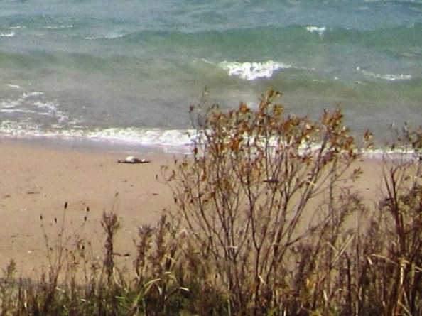 They’re not going to be able to tell how it died from pictures Mickey says. Well, no, but they’re going to be able to tell what species were part of the die-off, and that’s useful information. This is going on all along the shores of Lake Michigan and in other parts of the Great Lakes, too.