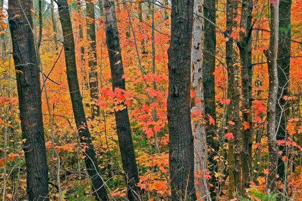 I found some of those kinds of colors last weekend. Forests have layers which are hard to see during the summer but blossom in the fall. Overcast, rainy days make colors pop, too.