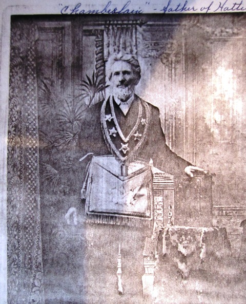 Fraternal organizations will still be permitted. They have a long and storied history here in the Township, and were fiercely popular among my Civil War veterans. Masons, Maccabees, Gleaners, Foresters, the G.A.R. itself. Others, too, some lost to living memory. Here, for example, is a photo of a “Chamberlain” who might–or might not–be Hattie Chamberlin Arnold’s daddy, Jeremiah Chamberlain. Or Chamberlin. Does anyone have any idea at all of what organization’s regalia he’s wearing? I suppose I must ask Babs, as Jeremiah, if this is he, lived most of his life in Ohio, and they’ll get up to most anything in Ohio.