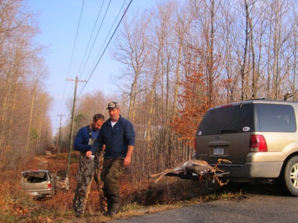 Scott Kreutzer was bringing home the venison. He and his son Brody were hunting with their friend Craig Winneur, whose father-in-law owns 15 acres near the Writing Studio and Bait Shop. Very near, as a matter of fact, and I lectured the Duo severely about what could happen to little dogs who went walkabout in November. I was taking photos from the car and calling out questions because, naturally, I was running late. “You can get out of the car you know,” said Craig. OK, here’s your closeup. (If you feel that you might not wish to read any further, I will understand. Otherwise, press “more” to continue.)