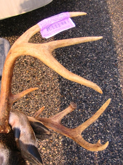This is a nine-point buck. I counted. It is a blogly responsibility to confirm the facts. Um–nine? “If you can hang a ring on it we count it,” said Scott. Ah. If you look closely in the lower right corner you will see the little nubbin that counts as the ninth point.