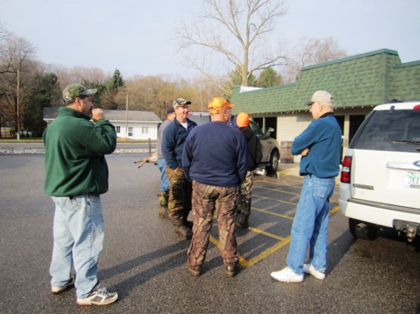 The guys were headed to Sonny’s too. Off we went to observe the Male Bonding Ritual. The parking lot was already full of men in billed hats, cellphones at the ready. Craig had called his father-in-law the moment the buck went down, and word spread.