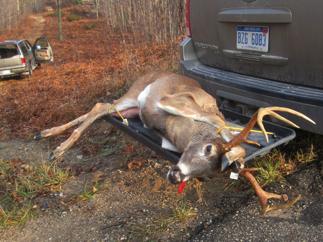 I was on my way to Chris and Sonny’s yesterday when I saw a truck at the side of the road with a buck lashed to the back. This is a common sight on the second day of firearm deer season, but it’s something I don’t think I’ve ever shown you before.