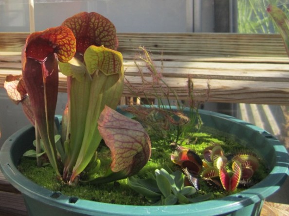 There was a nice display of Pitcher Plant, Venus Flytrap, and other carnivorous flora.  (If you think the hog slaughter post was graphic you definitely do not want to read about Venus Flytrap.  Me neither.)   If you have a flying pest problem, this might be the dish garden for you.