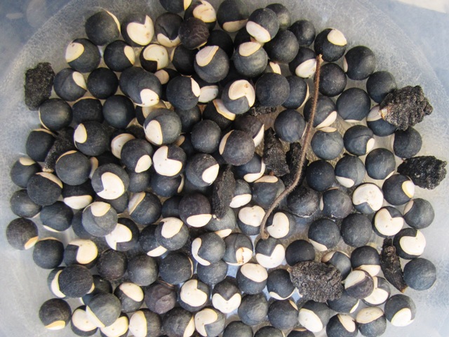 Love-in-a-puff is weird in a nice way.  The seedpods are little green balloon shapes that wither into something akin to Cocoa Puffs–thus the name–but the love is in the seeds.  They’re a tasteful black imprinted with a white heart shape.  Very tailored.