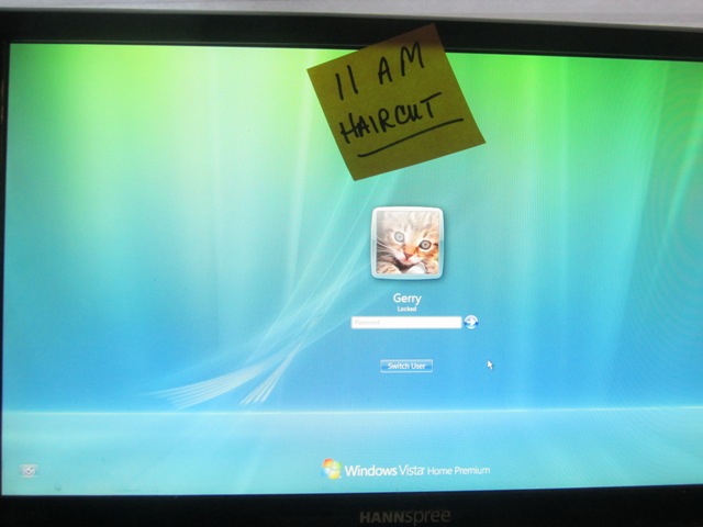 The last thing I did on Friday was to put a note to myself on the monitor. I forget everything, and I did not want to forget my appointment with Barbara Higgins. I meant to take a “Before” and “After” but I forgot that part. You see how I am.