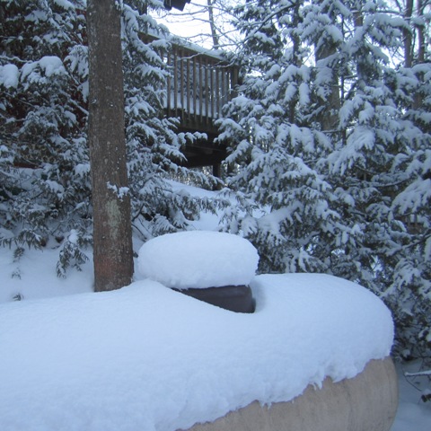Saturday, 10:00 a.m. We are back inside and toasty warm and no one looks ambitious to go out again. We have the newspaper and a fresh pot of coffee. We have groceries, although I must say we’ve been making a dent in them. And looky here!