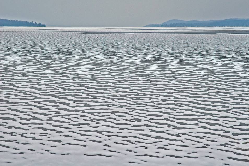 Beautiful… from here, at the extreme north end of the lake we see white, ice covered with snow and tonight there are two lights out there.reminding us that ice- fisherpeople are still out.