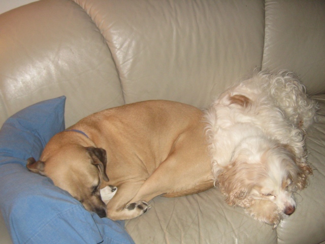 Experiment with the old little camera, which I have to shoot blind. Thus the Duo, caught in the act of snoozing on the sofa, Miss Sadie with her head on my very own reading pillow. (It was still warm. I just finished Pat Conroy’s My Reading Life, which is a beautifully made book filled with exactly the sort of stampede of language you’d expect.)