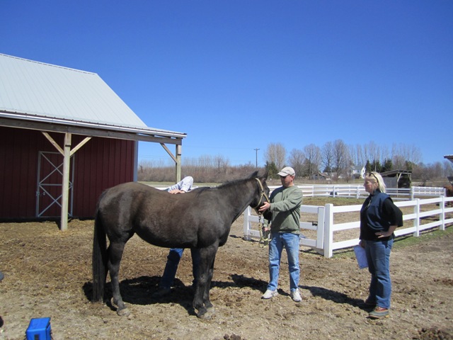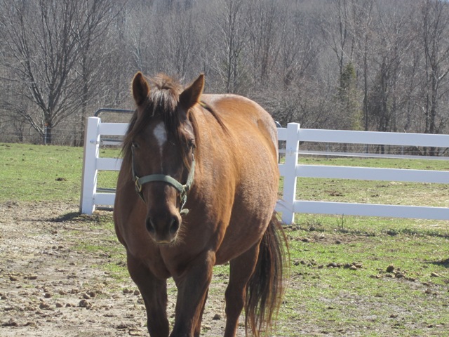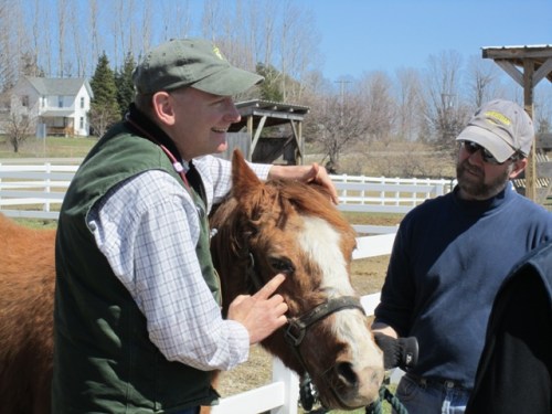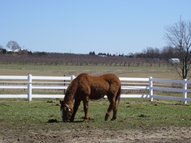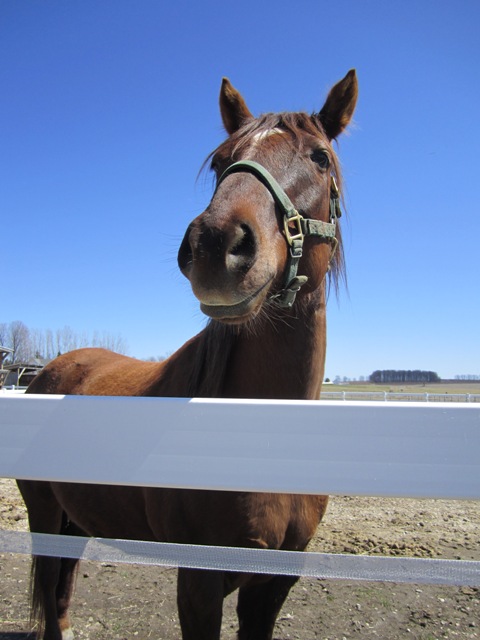 Yesterday was spring check-up day at Bay View Farm. Now there are not a lot of animals up there on the ridge, but what they lack in sheer numbers they make up for in personality. This is Monty the Morgan. (Yes, he is all out of proportion. That is the photographer’s fault, not Monty’s. He is quite handsome. I have a little crush on him.)