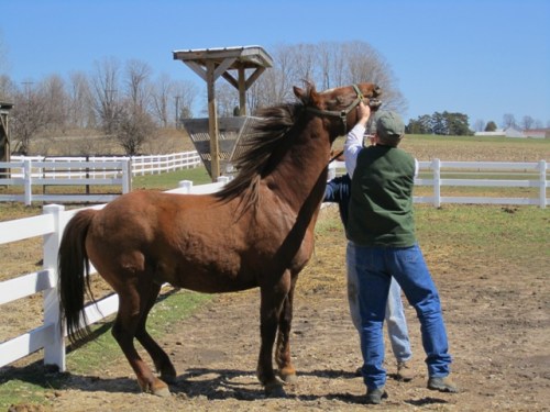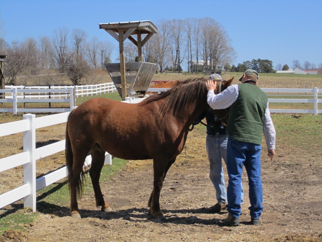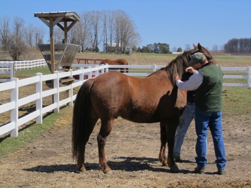 All three of them are rescue horses, and on Tuesday all three met their new vet. This is Dr. Chris Randall, giving Lucy a nice skritching. He makes barn calls.
