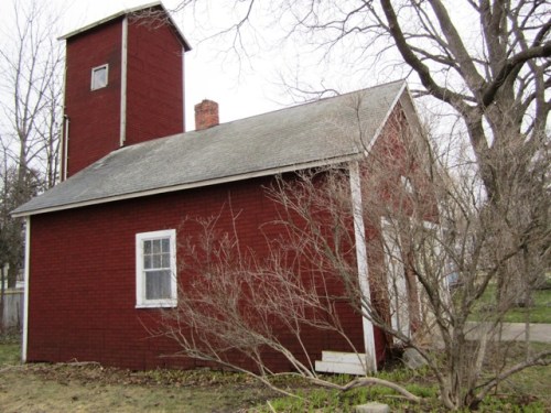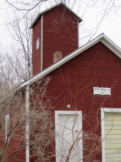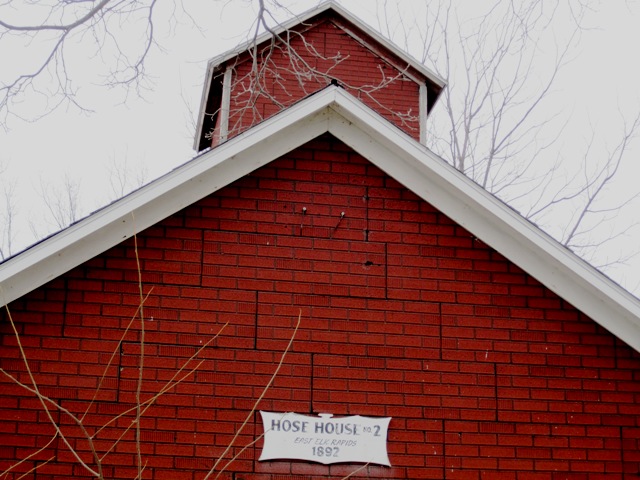 It’s the hose tower at Hose House No. 2 on the east side of Elk Rapids, Michigan, vintage 1892, long since turned into someone’s garage.