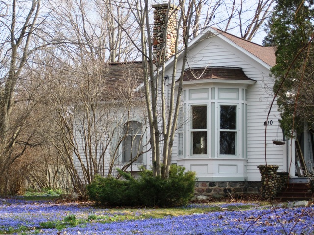 For the last couple of days I’ve had business in Elk Rapids.  Katherine and I went down there for our Environmental Art class, about which much more later in its very own post.  On our way home we had to stop to take pictures of an east side house that has drifts of scilla in bloom.