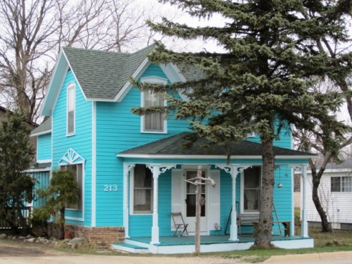 I have a weakness for brightly colored houses.  Remember the orange one in Bellaire?   I also have a weakness for this sort of building.
