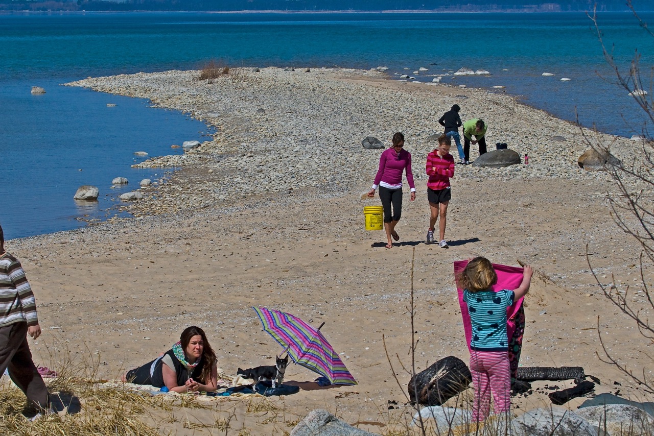 Babs writes: This was not taken today, but earlier last week in Elk Rapids. We had snow today and wind, and wind and wind. However I think these folks were pushing it. It was not that warm on the beach that day, they just wished for it. It was probably in the high 40’s that day.