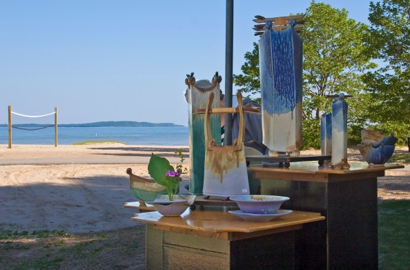 Babs went to ArtRapids! on a perfect day and captured the perfect summer dress.  I was captivated at once.  Vessel dresses! I thought.  They look just like the ripple of Grand Traverse Bay over its sandy shore.  Who would think of such a thing?  And why am I so taken with the work?  You can, as always, click on the photo for a larger version if that will help you puzzle it all out.