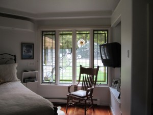 Running a B&B is no job for the faint of heart, but Patti was up to the task.  She and Jack could always retreat to the serenity of the master suite, with its fireplace and sitting area and polished wood floors and custom stained glass window.