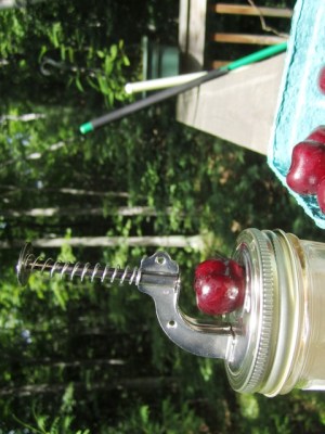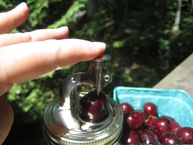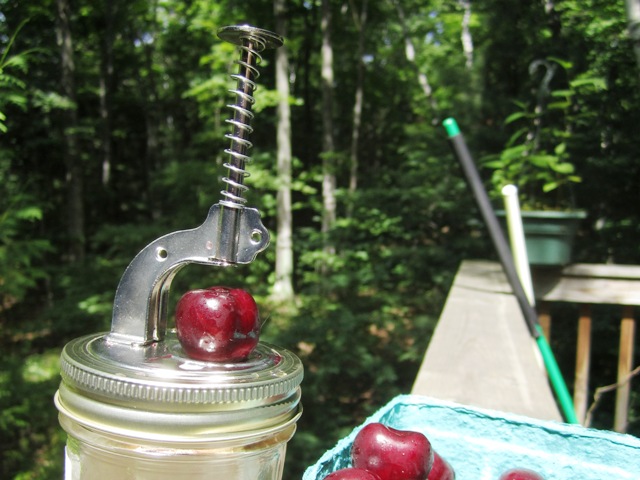 It is tedious to do a whole batch that way. That’s why the orchards have more efficient pitters you can use on your U-pick stash. They also sell big bags of pitted tart cherries. But I like to add some fresh dark sweet cherries to a salad or to ice cream–and I like to just eat ’em. That dandy little pitter works just perfectly for that. I love it.
