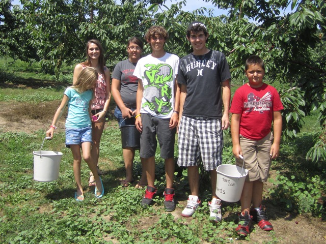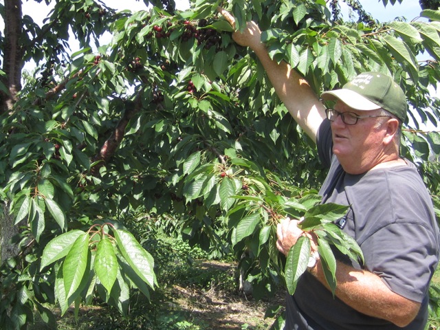 You, too, can have some of the last of the dark sweet cherries, assuming that you are willing to spend a few minutes picking them yourself. Jim King and a bunch of the neighborhood kids show you how easy it is.