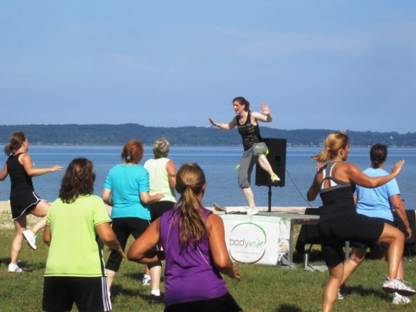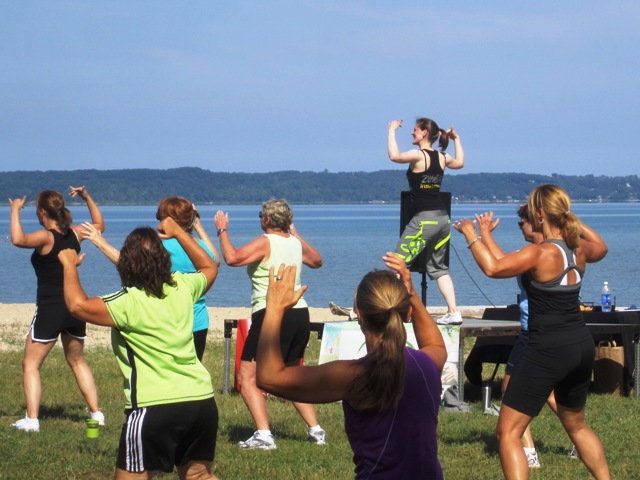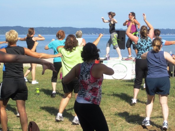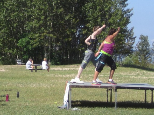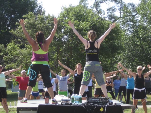 I will tell you. They are leading leventy-eight other women, a spaniel and a terrier through some cool Zumba moves. They called it a Zumba Party in the Park, and that’s exactly what it was. It was way too much fun to be an exercise class.