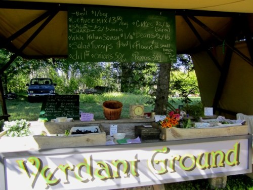 Bins of produce and flowers, prices on the chalkboard, a scale on the table, a little cash box where you pay for your food and make change. The stand is run on the honor system, but co-op members are generally around somewhere. If you like, they’ll show you around the gardens and pick your corn for you right this minute. They’ll explain how to cook this ‘n’ that, or how to grow it yourself.