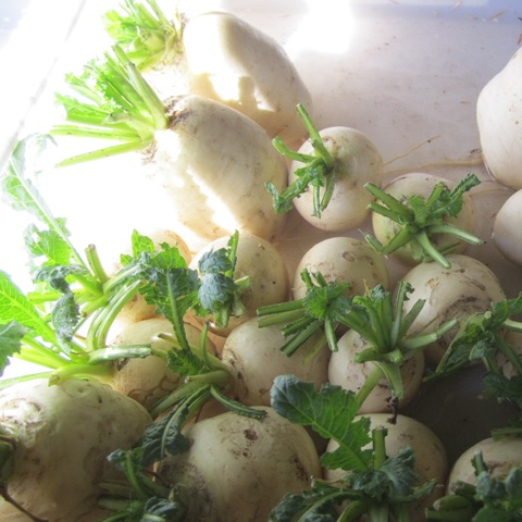 This month you can expect sweet corn and tomatoes and Delicata squash, fall spinach, salad turnips, broccoli, carrots, red onions, potatoes, edamame, and four kinds of dried beans: pinto and adzuki and Hidatsa Shield beans and glossy black beans from the same strain the Cherokees carried west on the Trail of Tears.
