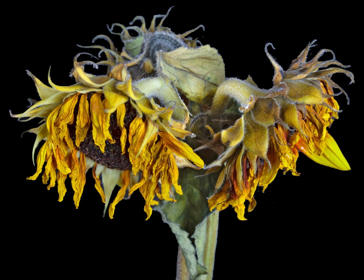 We always used to let our sunflowers go to seed, and harvest them for the hamsters (keeping a few for next years’ flowers). Dead sunflowers to us, happy munching to a hamster.
