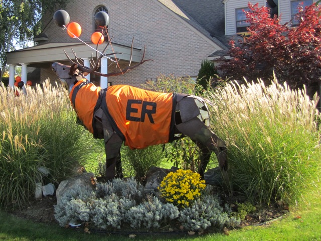 Homecoming is upon us once again. It may look as if the elk in front of the Alden State Bank is wearing a Halloween costume, but that would be silly. He’s wearing a football jersey. This is, after all, Spirit Week in Elk Rapids.