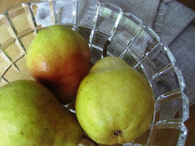 That’s October for you.  The leaves are dazzling, the sky is blue, the boat hoists and docks have been hauled off the Bay.  The pears are ripe.