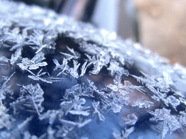 Ice crystals on blue car