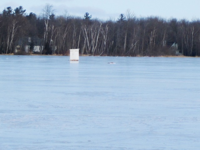 I was in Elk Rapids this morning, and something caught my eye.  Could it be . . . yes.  There was an ice fishing shanty out on Bass Lake.