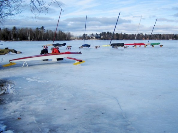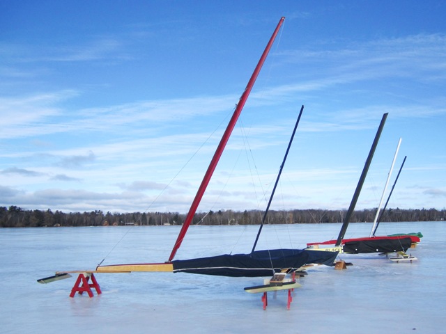 I had not expected to see ice boats today, but there they were, all lined up for racing.