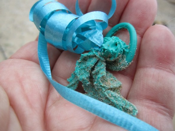 There were a lot of Lost Objects tangled in the beach grass or half buried in the sand. When we got home I had quite a collection to dump in the trash. It’s sad to see bits and pieces of celebrations end up as litter.