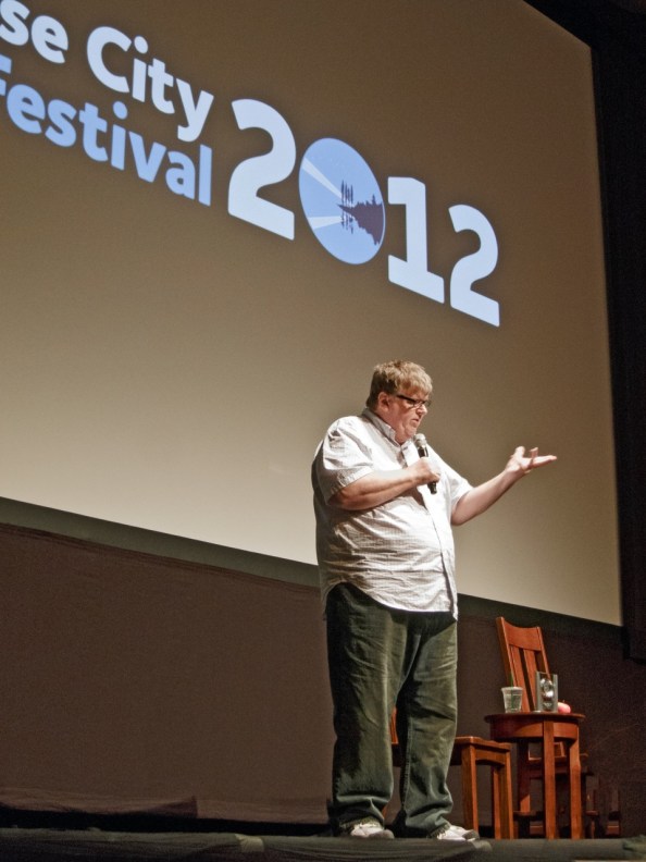 This is, of course, Michael Moore during his annual Mike’s Surprise performance. Those who follow Michael on Twitter were able to go with him on one of his famous walks.