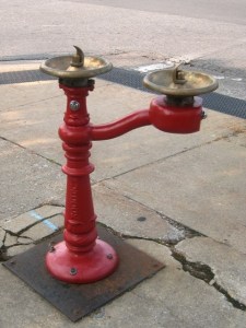 Isn’t that a spectacular place? It is. Now I must tell you that I was one of the intrepid amateurs. Babs showed you a glorious Victorian mansion. I will show you . . . a red drinking fountain.