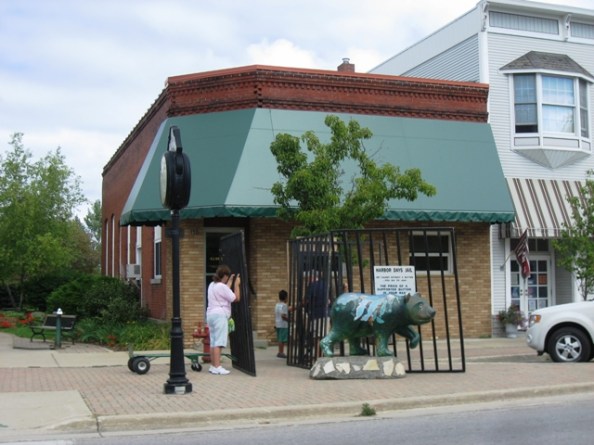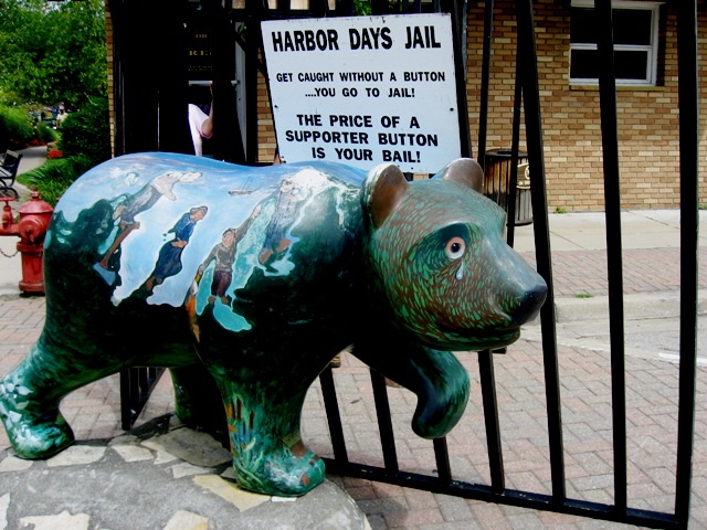Do not be alarmed. Those people are not constructing a cage for The Bear. They are constructing a jail for miscreants who show up for Harbor Days without their Harbor Days Button.