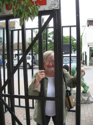 I confess. It was a put-up job. I took pictures, went over and helped put the jail together, got into it and had my picture taken – and was clutching my pin in my hand. The moose and the dolphins sound like suitable iterations of the theme. There were more bears in the original exhibit (there are links on the Great Northern Bear Hunt site) but I don’t know how many of them are still in place. The next bear I show you will probably be from the Elk Rapids Historical Museum “Treasures from the Toy Chest” exhibit.