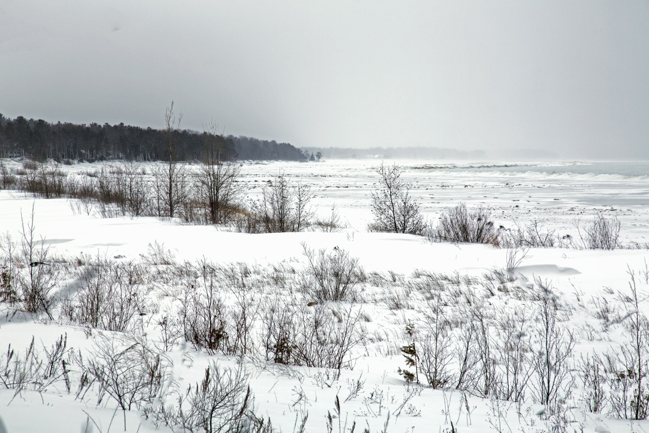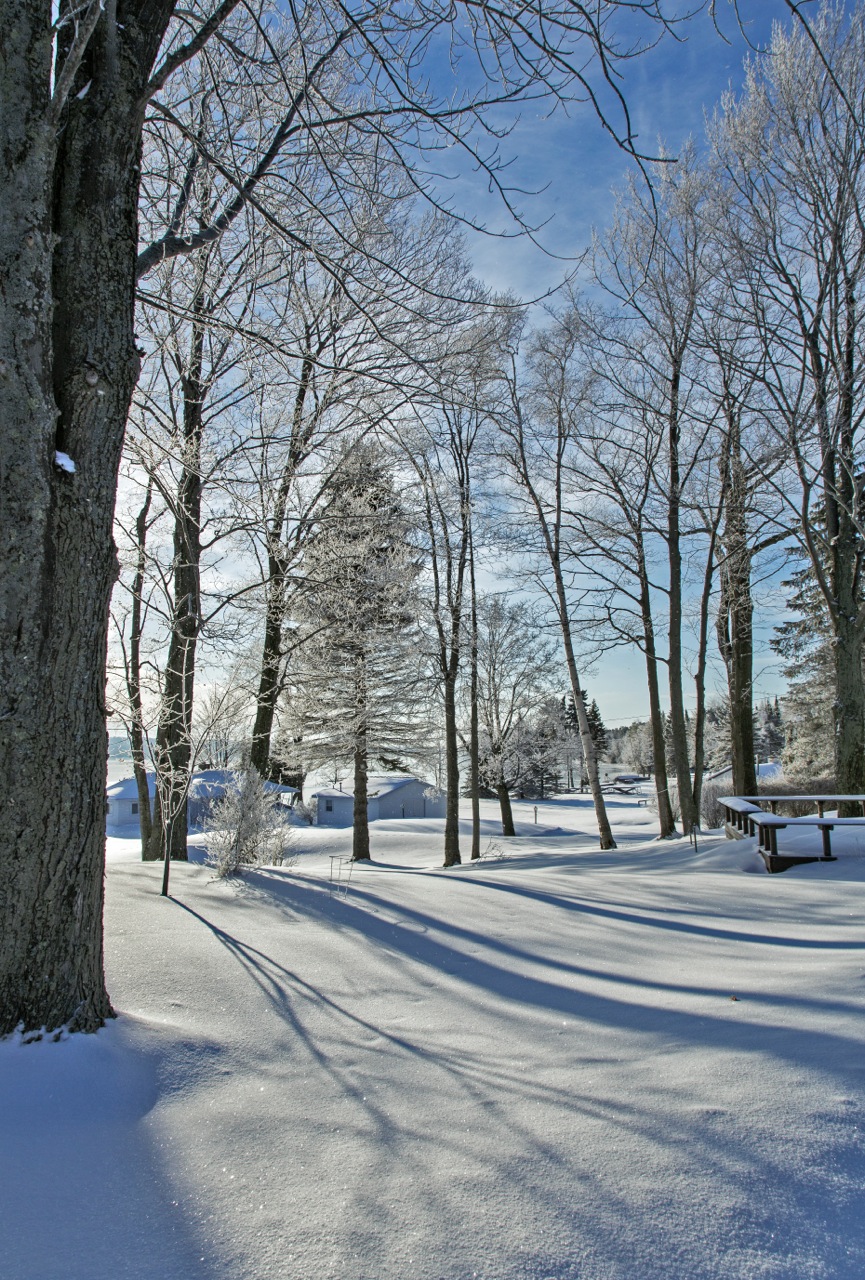 By contrast, January 13 offered the Bay in black and white. Babs wrote: This is Grand Traverse Bay near Elk Rapids. We have lots of snow and it just keeps coming, more each day. I rather love it. There is no accounting for tastes. When the Bay looks like this, even Miss Sadie and the Cowboy would just as soon dash back in the house and pile into my reading chair.