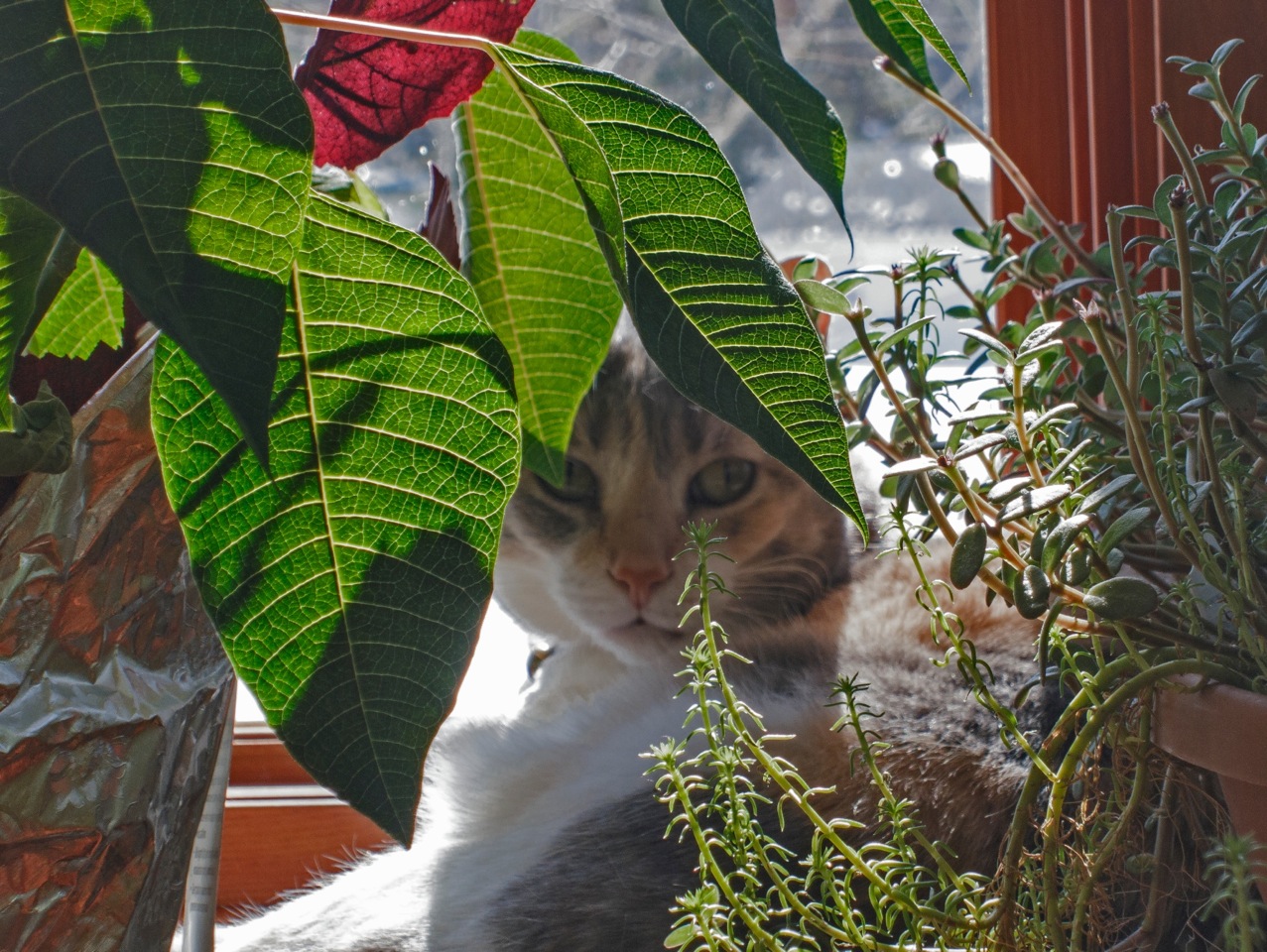 I looked at our little puss this morning, curled up on a fluffy couch pillow as I headed out into the frozen landscape on the way to work, and thought, “who’s the daft one?”. I have a feeling it might be the two-legged residents!