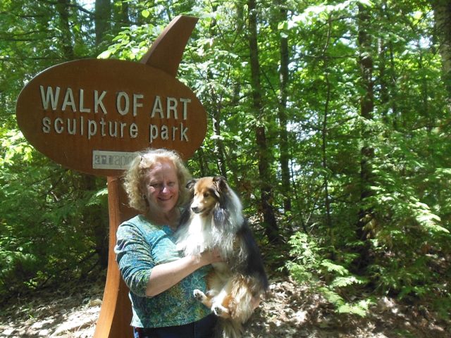 The ArtRapids! Walk of Art sculpture park has been attracting many visitors, including Dawn Kinster of the Change is Hard blog and Katie, the princess who lives with her. They braved the mosquitos to camp at Hartwick Pines last weekend, and came to Elk Rapids to visit us while they were at it. We took a tour of the village, where the lilacs are in full, fragrant bloom.