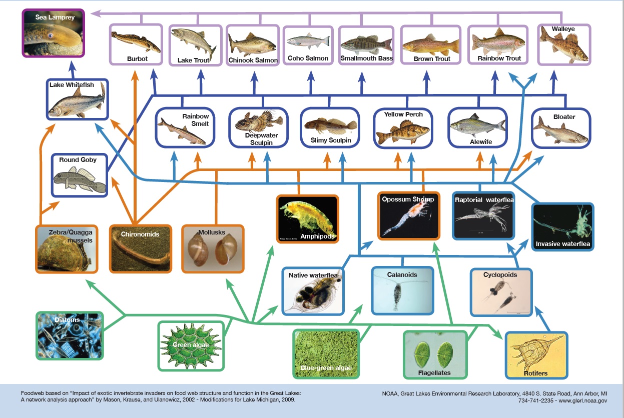 Lake Michigan Food Web, NOAA – NOAA – Great Lakes Environmental Research Laboratory Sea Grant Extension Educator